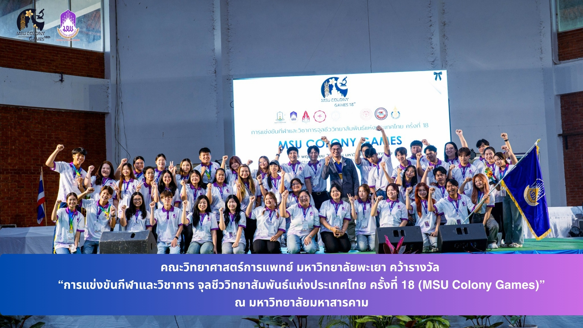เมื่อวันที่ 7-9 พฤศจิกายน พ.ศ.2568 หลักสูตรวิทยาศาสตรบัณฑิต สาขาวิชาจุลชีววิทยา คณะวิทยาศาสตร์การแพทย์ มหาวิทยาลัยพะเยา เข้าร่วม การแข่งขันกีฬาและวิชาการ จุลชีววิทยาสัมพันธ์แห่งประเทศไทย ครั้งที่ 18 (MSU Colony Games) 2568 โดยมี คณะวิทยาศาสตร์ มหาวิทยาลัยมหาสารคาม (มมส) เป็นเจ้าภาพ ในครั้งนี้มี คณาจารย์ นิสิต และนักศึกษาสาขาวิชาจุลชีววิทยาจากสถาบันอุดมศึกษาทั่วประเทศ จำนวน 9 แห่ง รวมกว่า 600 คน เข้าร่วมกิจกรรมอย่างคึกคัก เพื่อสร้างเครือข่ายทางวิชาการ แลกเปลี่ยนประสบการณ์ และเสริมสร้างความสัมพันธ์อันดีระหว่างสถาบัน